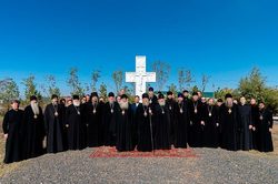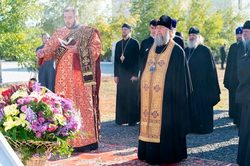 К памятному кресту митрополит Александра, архипастыри и духовенство возложили цветы.