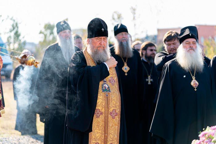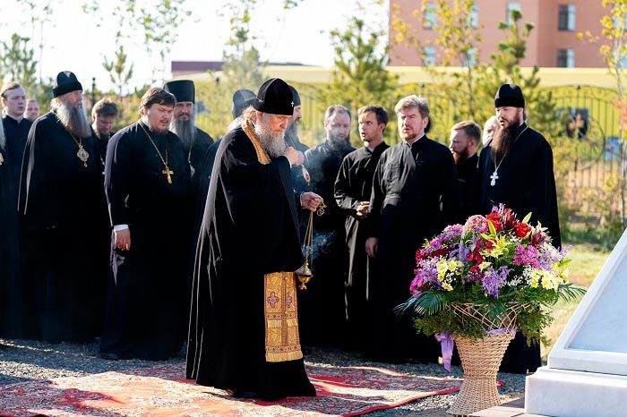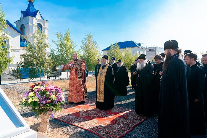 18 сентября 2022 года. Акмолинская область, Целиноградский район. Митрополит Астанайский и Казахстанский Александр, архипастыри и священнослужители – участники празднования в честь Собора новомучеников и исповедников Казахстанских, посетили село Акмол (Малиновку), где в годы массовых политических репрессий с 1937 по 1953 годы находился 17-й исправительно-трудовой лагерь Р-17 – Акмолинский лагерь жен изменников Родины, так называемый АЛЖИР. Здесь в годину безбожных гонений претерпели страдания и смерть за Христа 12 новомучениц: монахиня Евдокия (Андрианова), Анна Водоланова, Акилина Дубовская, Наталия Копытина, Александра Смолякова, Ирина Гуменюк, Ксения Радунь, Марфа Дударенко, Домна Василькова, Татьяна Кушнир, Наталия Карих, Иустина Меланич.
