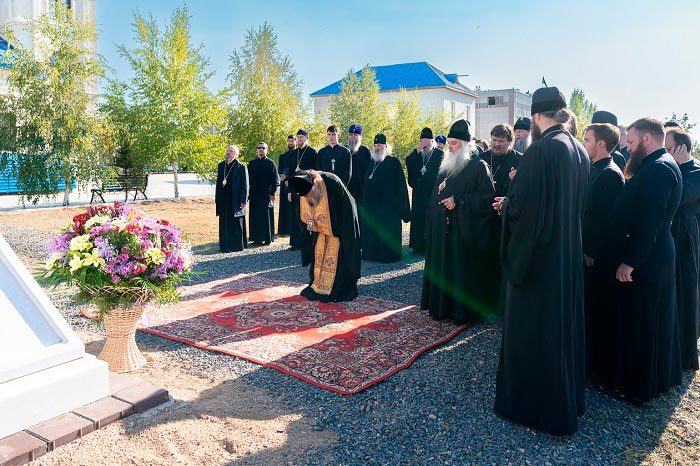 В храме во имя новомучениц Акмолинских Глава Митрополичьего округа совершил молебен казахстанским святым, за которым звучали прошения об умножении любви и искоренении всякой ненависти и злобы. Далее у поклонного креста, установленного близ храма, паломники отслужили заупокойную литию и молитвенно помянули «архипастырей, пастырей, монашествующих и мирян в земле Казахстанской в годину лютых гонений за правду Божию и Церковь Христову пострадавших, и в месте сем неправедно умученных и убиенных». Была возглашена вечная память всем «от безбожников умученным и убиенным, от голода, холода, ран, болезней и непосильных работ скончавшимся».