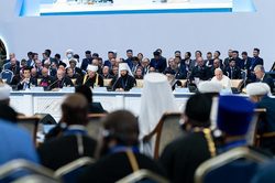 Далее прозвучали выступления Папы Римского Франциска и Верховного имама Университета «Аль-Азхар» Шейха Ахмада Ат-Тайеба.