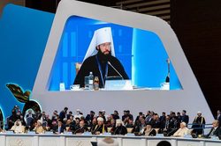 Председатель Отдела внешних церковных связей Московского Патриархата митрополит Волоколамский Антоний, возглавляющий делегацию Русской Православной Церкви на форуме, огласил послание Святейшего Патриарха Московского и всея Руси Кирилла.