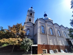 И вот мы в городе Тараз, подходим к красивому собору Успения Пресвятой Богородицы с высокой колокольней в центре города. Наша сестра во Христе Нина, жительница города Тараз, уже встречает нас у ворот. Какие же радостные эти моменты долгожданной встречи родственных душ!