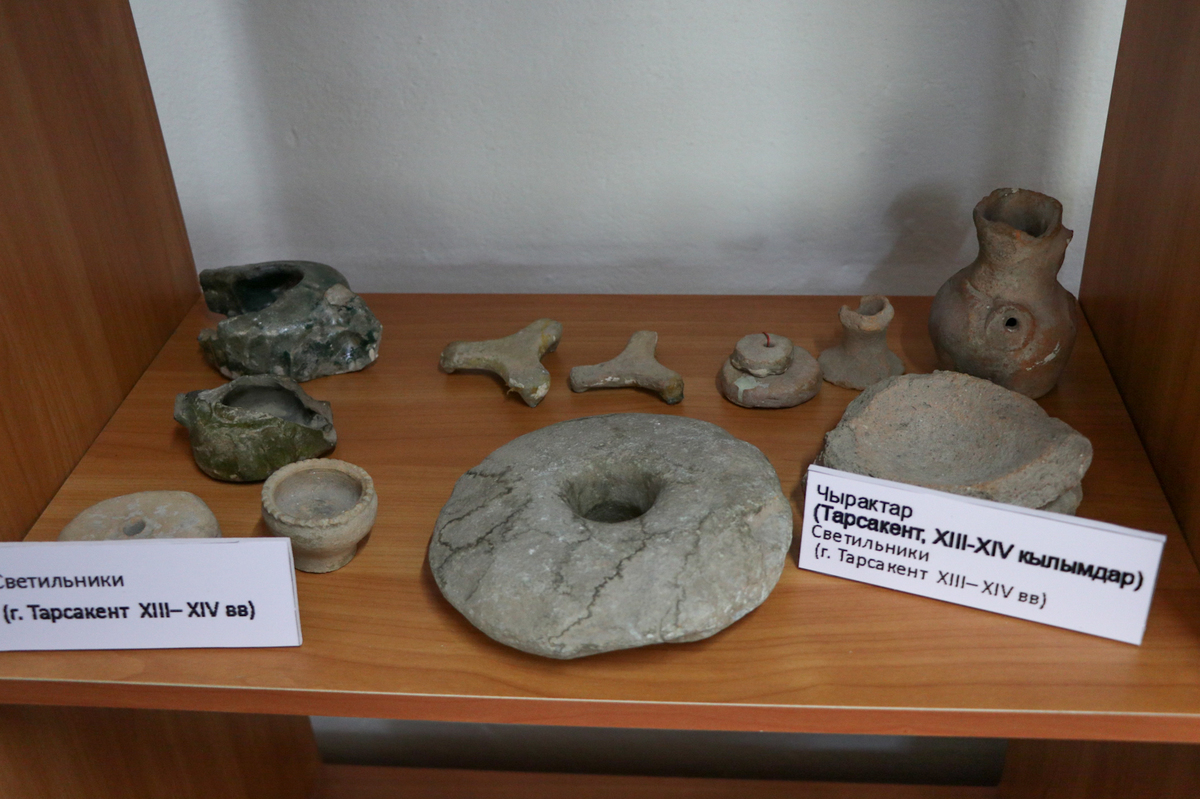По словам учителя истории Мукамбетовой Н. Д. некоторые артефакты, связанные с историей Тарсакента были найдены школьниками во время раскопок. Нурия Джумагуловна рассказала о том, что школьный краеведческий музей был открыт еще в 1967 году. Чуть позже был открыт археологический отдел. Археологическими исследованиями занимались члены кружка «Юный археолог». Работу школьников возглавила учитель истории М. Х. Коломиец. Члены кружка проводили раскопки на месте расположения городища Тарсакент. Именно благодаря работе данного кружка, появилась возможность обогатить фонд музея.