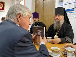 Встреча проходила в теплой обстановке. Помимо обсуждения совместных планов и намерений Владимир Иванович рассказал о том, что до сих пор поддерживает связь с митрополитом Омским и Таврическим Владимиром (Икимом), владыка Савватий в свою очередь упомянул о том, что является его учеником.