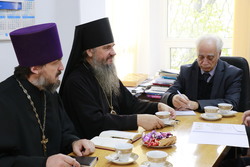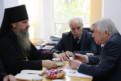 Стороны встретились как для личного знакомства, так и для определения ориентиров и путей для тесного сотрудничества между религиозным, научным и студенческими сообществами. Обсуждались вопросы исторического просвещения, совершенствования образовательных процессов, методического сопровождения в православных учебных заведениях. Со стороны епархии были представлены несколько конкретных предложений, в частности - в проведении совместных мероприятиях в предстоящих Свято-Антониевских и Рождественских встречах. Его Преосвященство озвучил пожелание Владимирской школы принимать участие в работе Русского Географического общества, которое планируют открыть при КРСУ.