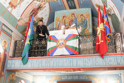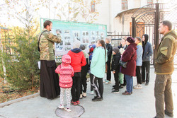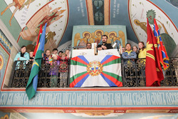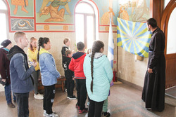 В ходе экскурсии по храму, настоятель рассказал гостям о подвигах великих полководцев Александре Суворове, святом адмирале Феодоре Ушакове и о российском солдате Евгении Родионове. Затем была рассказана история о флагах, которые находятся в храме, после чего группа сфотографировалась с флагом ВДВ.