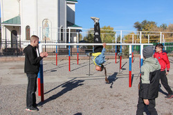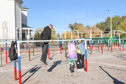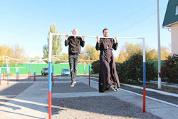 После экскурсии по храму гостей ждал спортивный городок. Ребята испытали свои силы на спортивных снарядах, а также получили небольшой мастер-класс от настоятеля.