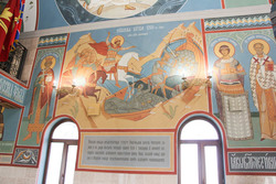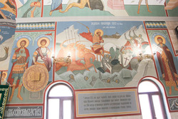 Гостей встретил красивый уютный храм. Его фрески рассказали не только о житиях святых, но и об истории Руси. Ребята узнали о величайших русских святых и героях: преподобном Сергии Радонежском, святых монахах Александре Пересвете, Андрее Ослябе, святом князе Димитрии Донском и, конечно же, о покровителе храма святом благоверном великом князе Александре Невском.