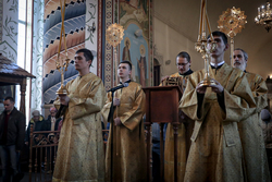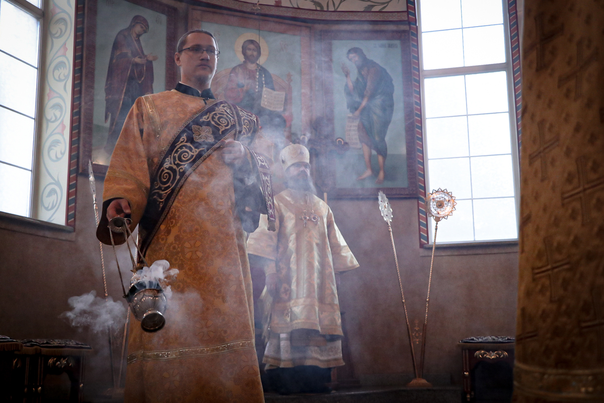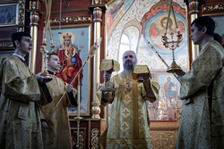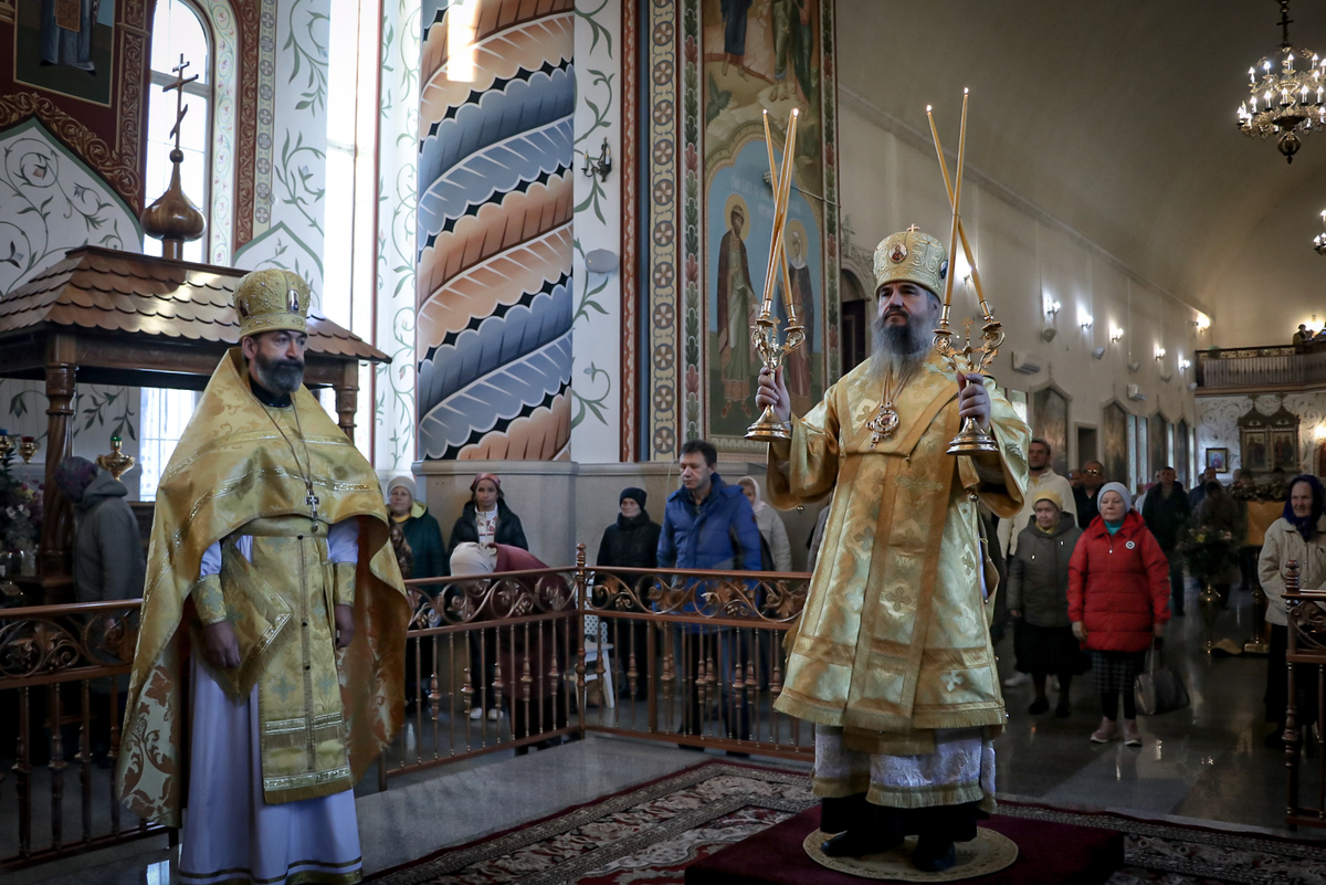 Свое воскресное обращении после Божественной литургии владыка Савватий начал с упоминания о том, что в древние времена причащались все участники Литургии. В настоящее время, по немощи человеческой или по нерадению, когда кажется, что тяжело приготовиться к Евхаристии, мы причащаемся не часто. Но по слову преподобного Серафима Саровского должно причащаться в Пасху, во все двунадесятые праздники, в престольные праздники, в дни рождения. Необходимо причащаться во дни болезней и тяжелого духовного состояния. Когда умер кто-то из близких, и в ближайшие 40 дней ему нужна сугубая молитва об упокоении, тогда молящегося об усопшем послушает Господь, если сам молящийся послушает Господа и приведет себя в должное состояние, также причастившись. «Если ты обращаешься к Богу, которого не слушаешь, как же ты будешь иметь молитвенное дерзновение? Бог любит всех - и злых и добрых, и глубоко верующих и маловеров, Бог всем содействует, но мы слабы». Его Преосвященство говорит о том, что наши молитвы могут быть бездейственными, если мы молимся одними устами, без сердечного расположения, и тогда дьявол ворует у нас эту молитву. О том, что любой труд, который совершает христианин должен производиться с любовью к тому, ради кого это делается. Мать ли это, которая не спит, укачивая младенца, воин ли, готовый положить душу свою за ближнего своего. Такое состояние души, уже не плотское, оно духовное и ангельское. «Если во Христе для нас родными стала целая страна, если пришло время защищать родину, если ближний мой нуждается в моей помощи, если алчущий ждет пищи, то моя любовь в том, чтобы забыть о своем комфорте и служить тому, к чему призвал меня Господь. Но, важно, чтобы подвиг совершаемый не был впустую. Ибо всякое дело, не Христа ради делаемой - не спасительно».