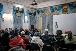 С приветственным словом к зрителям и артистам обратился иерей Илья Меляков, отметив важность человеческого общения в современном мире.