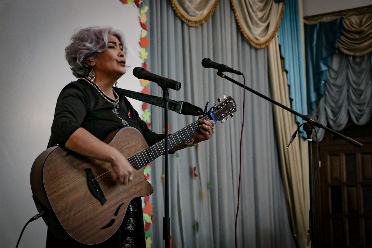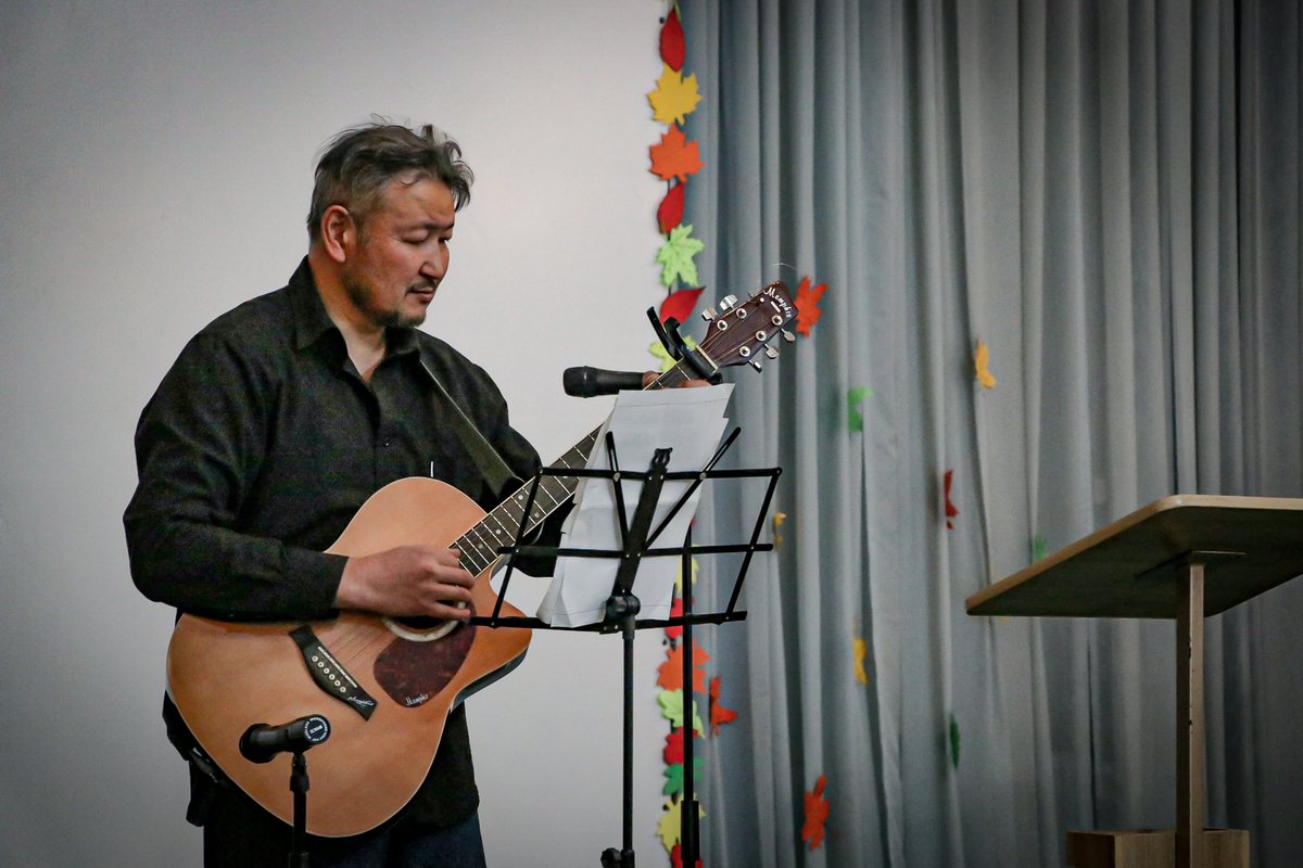 В программе прозвучали романсы русских и советских композиторов в исполнении лауреатов Среднеазиатской Романсиады Рукавишникова Леонида и Аманбаевой Розалии, а так же всеми любимые авторские песни, которые исполнили участники музыкально-литературного клуба «Белая птица». В завершении концерта состоялась премьера нескольких новых песен в исполнении ансамбля «Позитив», в состав которого входят участники клуба.