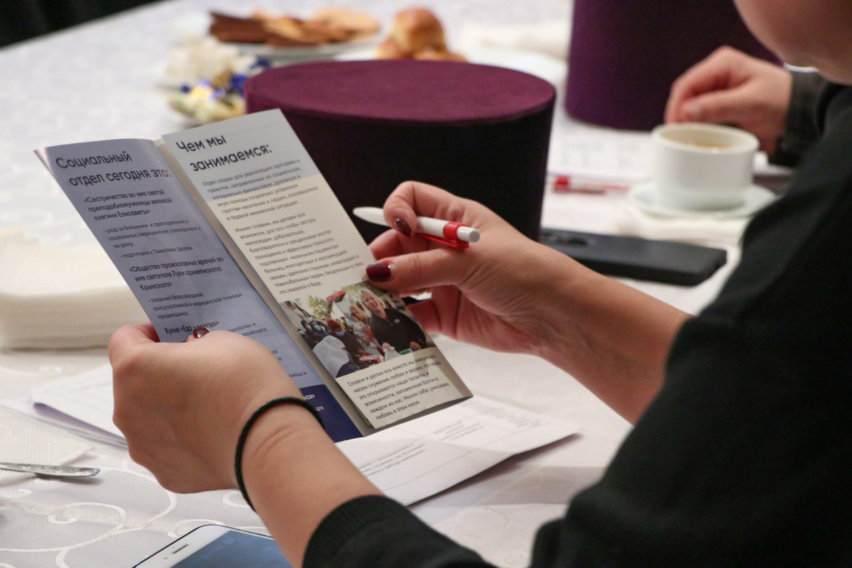 Социальное служение епархиального отдела направлено на оказание помощи тому, кто в ней остро нуждается вне зависимости от национальной и конфессиональной принадлежности. И работа, проводимая в этом направлении объединяет тех, кто получает помощь и тех, кто ее оказывает, что является мощным подспорьем для взаимодействия сторон с максимальным эффектом, если подходить к этому правильно. В практикуме «Наш проситель - человек без ресурсов. Как ему помочь» руководитель отдела Елена Иванова рассказала о том, как наилучшим образом понять проблему просителя и построить маршрут оказания адресной помощи. В своем выступлении Е.Ю. Иванова опиралась на опыт Синодального отдела и уникальную десятилетнюю практику епархиального служения милосердия.