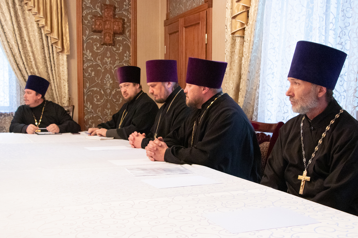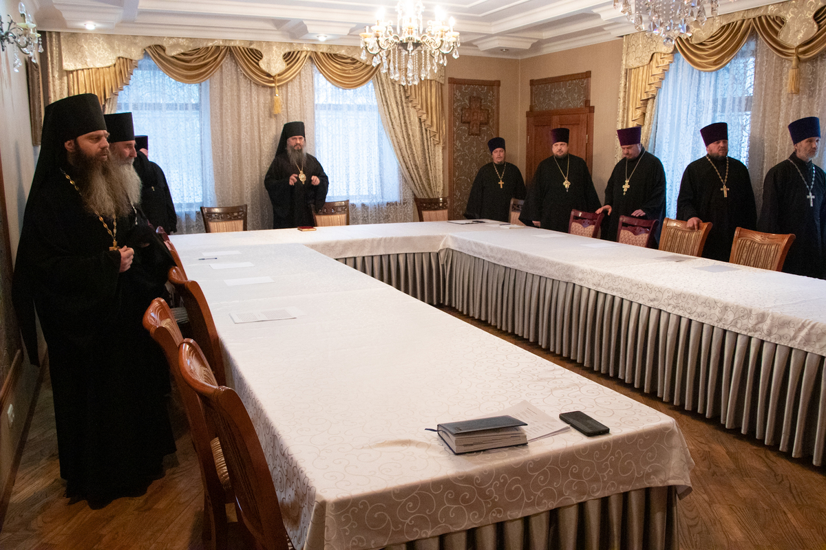 В работе Епархиального Совета приняли участие: секретарь епархии иерей Александр Пелин, члены Епархиального Совета, благочинные округов.