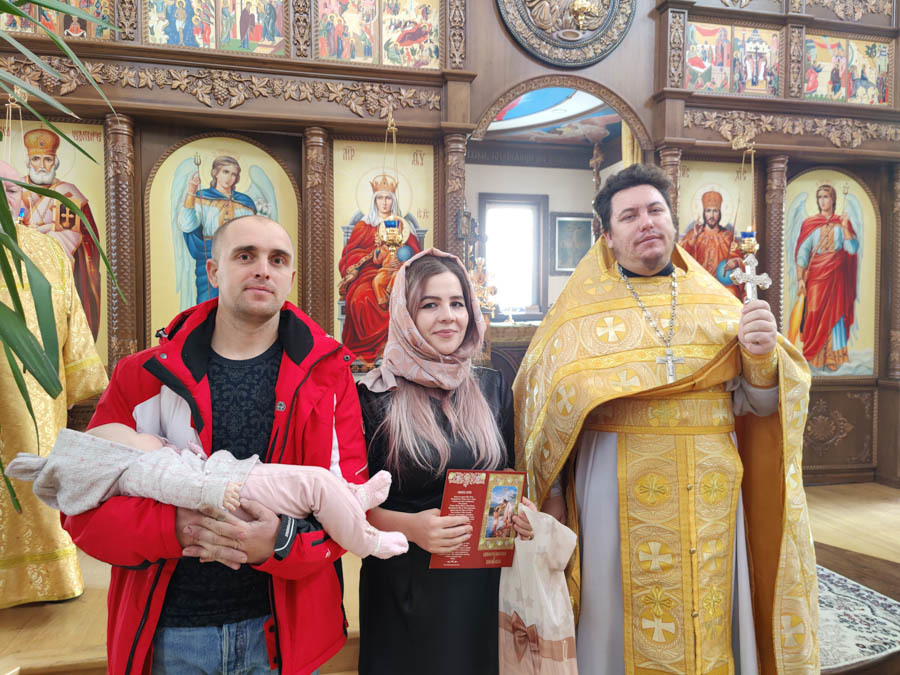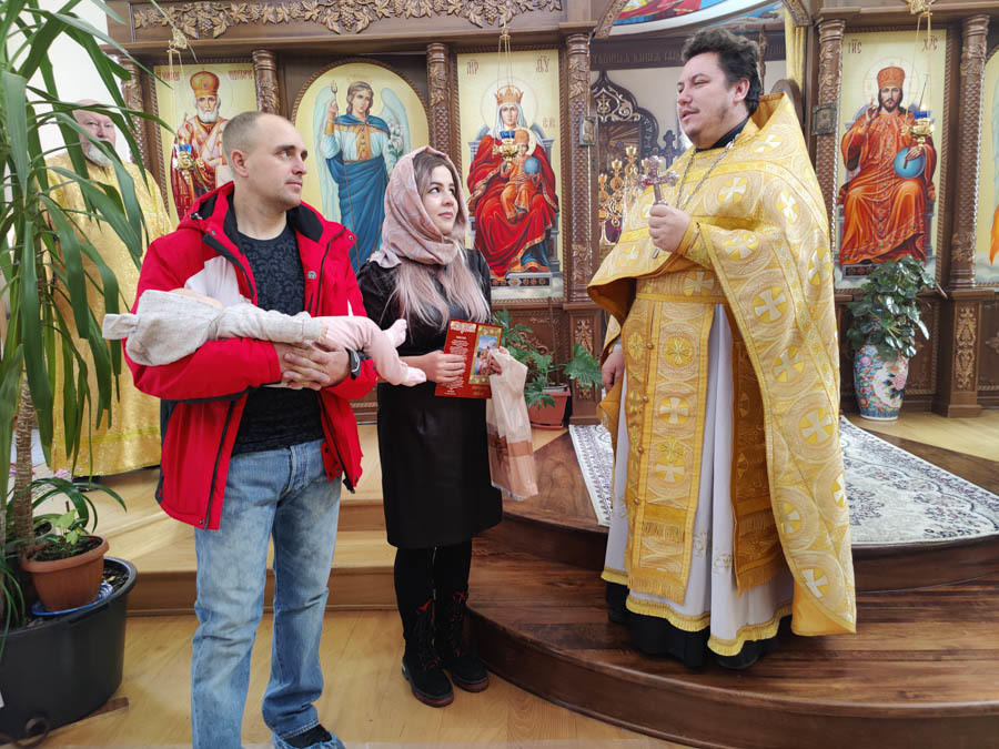 По окончании богослужения настоятель храма поздравил новопросвещенную младеницу Софию, ее родителей и восприемников с принятием Таинства Крещения.