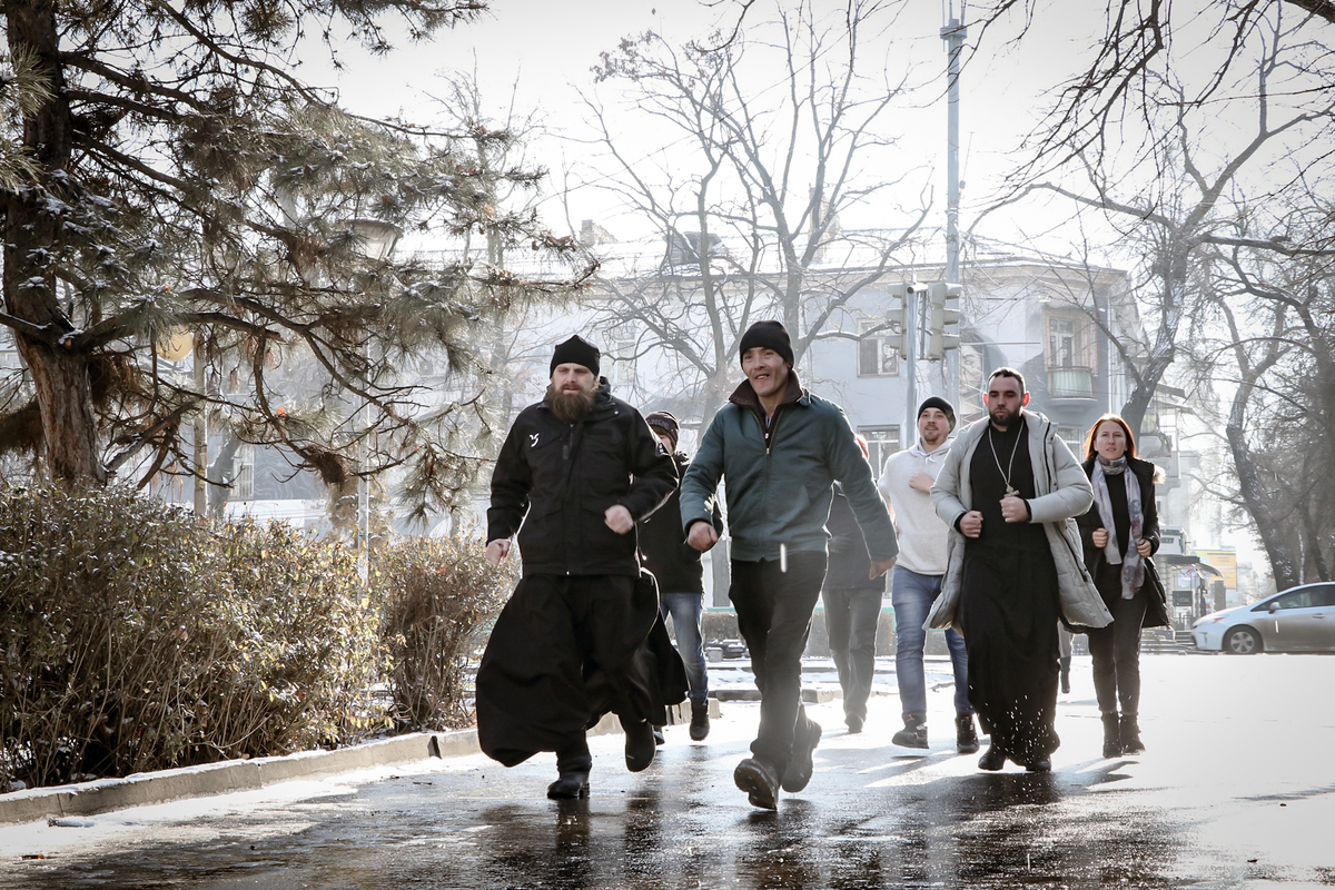 Акция началась с небольшой пробежки от кинотеатра Россия до Свято-Воскресенского кафедрального собора. Перед стартом участников благословил епископ Савватий, владыка отметил важность подобных мероприятий для духовной жизни верующих. После пробежки состоялся молебен святому преподобному Илие Муромскому. Молебен совершил иерей Илия Бойко.