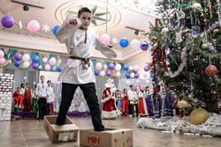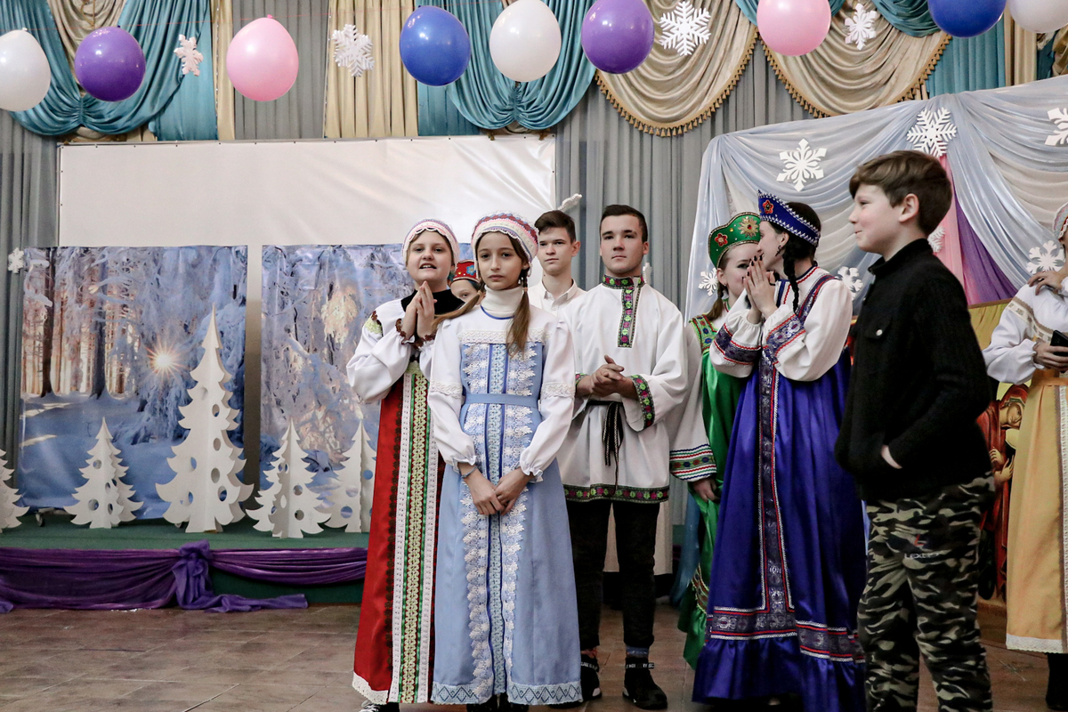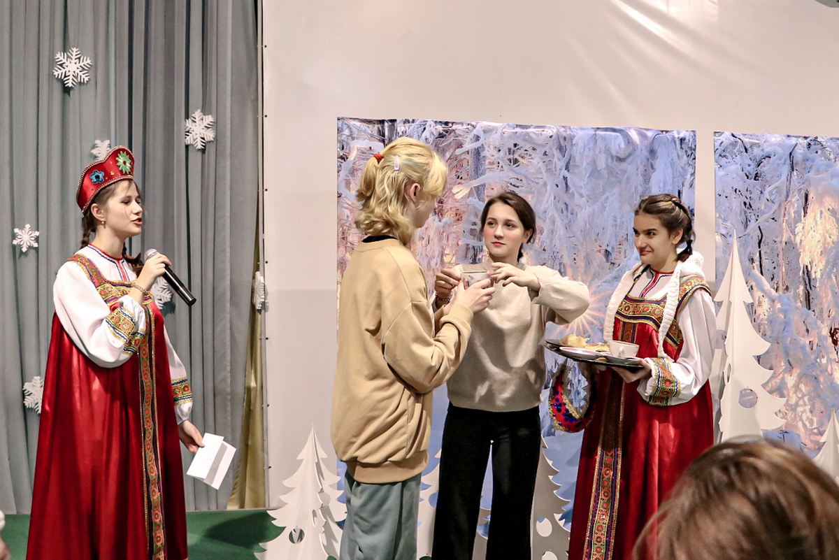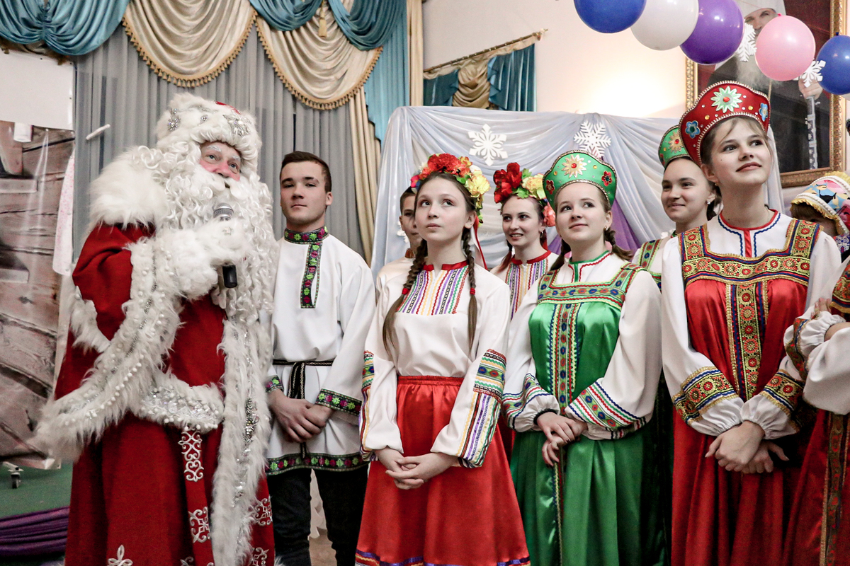 За два с половиной часа, проведенных в стиле русских народных посиделок, детвора, прибывшая на праздник в соответствующих костюмах поиграла с задорным дедом Морозом (Белкиным В.В.). По замыслу организаторов каждая команда проводила свои веселые игры, исполняла колядки.