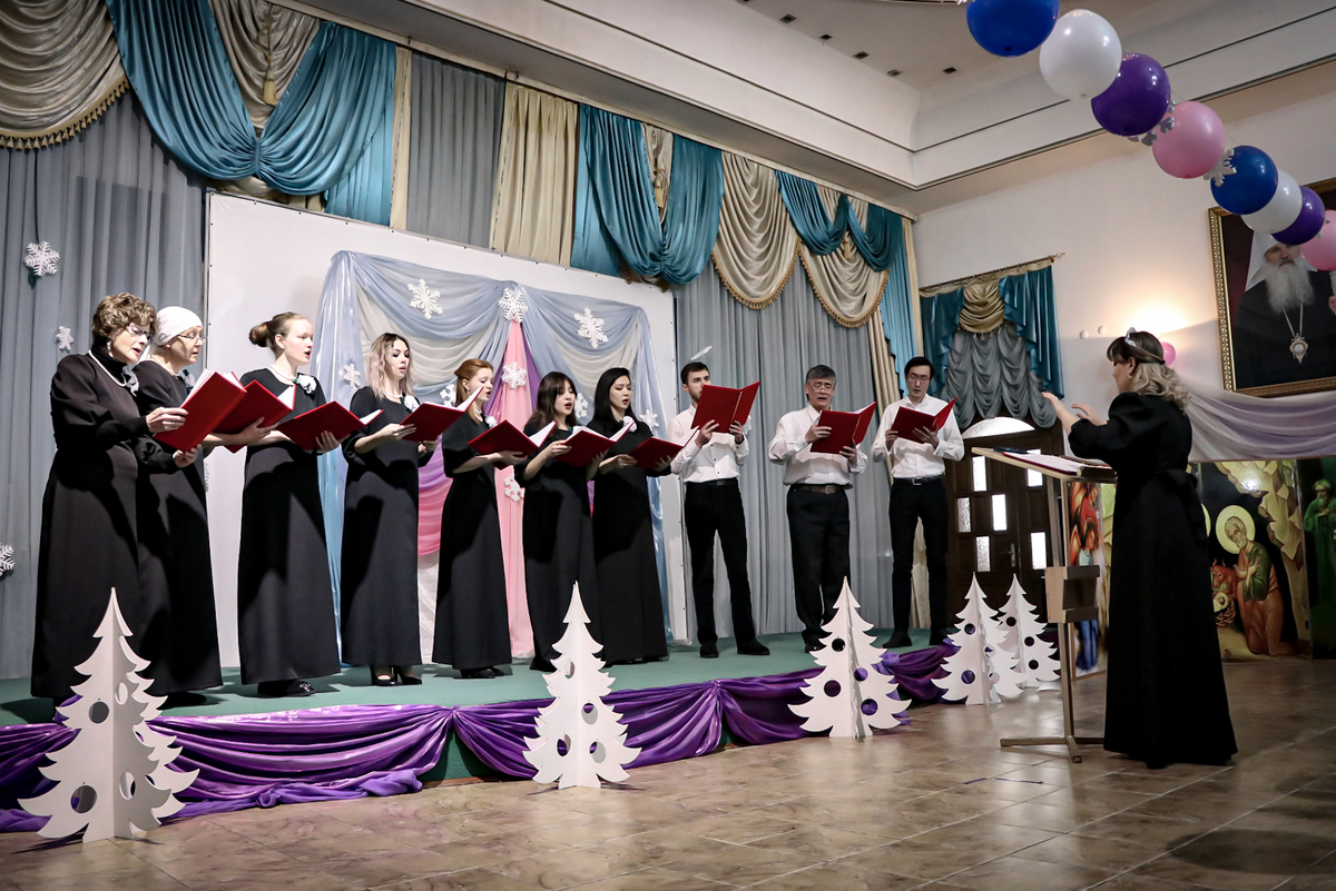 Концертную программу открыл клирос храма апостола и евангелиста Иоанна Богослова. Коллектив исполнил традиционные и всеми любимые колядки. Хочется отметить, хороший уровень подготовки и, несмотря, на волнение клиросу удалось передать радость и трепетное отношение к Рождеству Христову.
