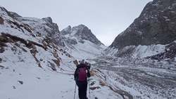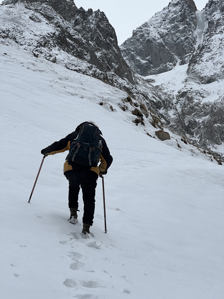 По своей сложности, несмотря на календарную дату, поход получился зимним с преодолением заснеженных участков, порой доходящих до 1,2 м глубиной снежного покрова. Перепад высоты составил 850 м от уровня альплагеря Ала-Арча 2200 м. Протяженность пройденного маршрута была приблизительно 12 км.