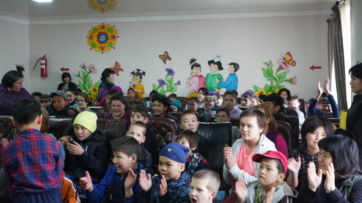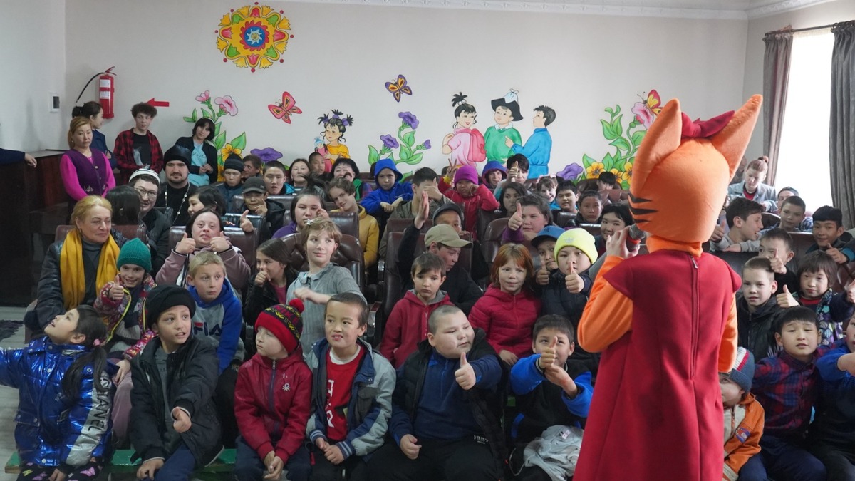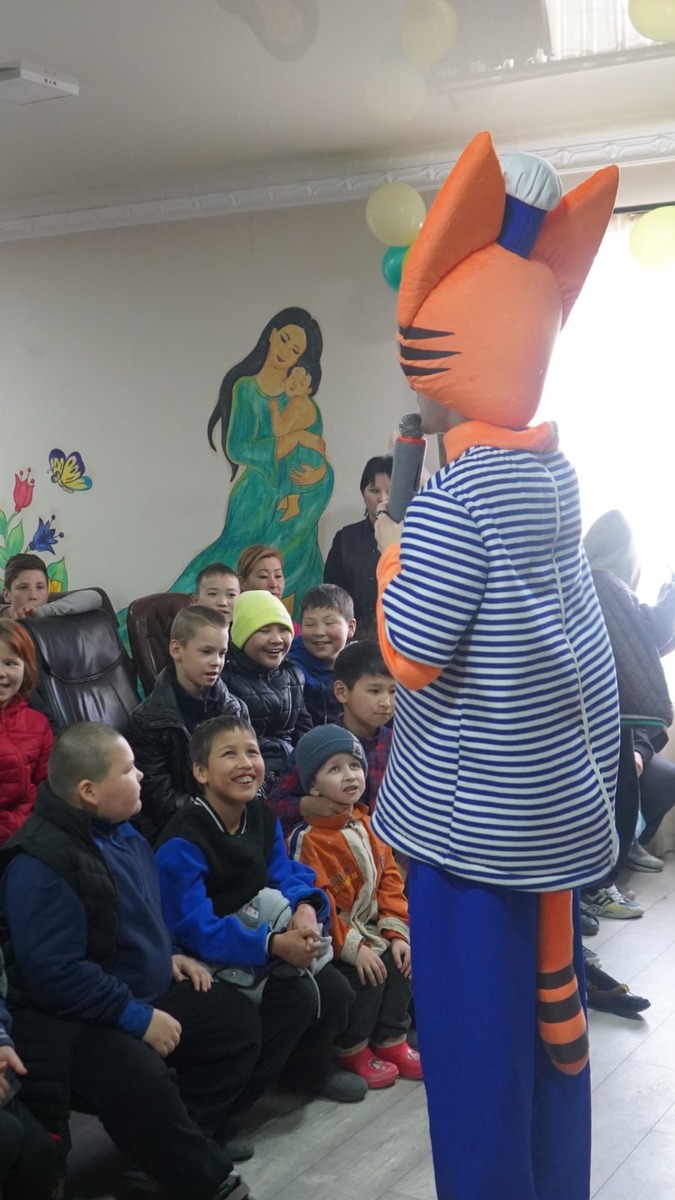 По инициативе ДУМК для детей было организовано выступление детских аниматоров. После окончания представления для детей КСОШ-И были переданы фрукты и сладкие подарки.