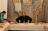По завершении ночного Богослужения, согласно традиции, состоялось праздничное чаепитие, сопровождаемое непринужденной беседой молодежи с архиереем.
