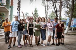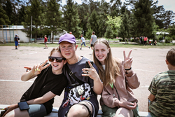 Затем каждый отряд представлял свой номер, который готовился в течение фестиваля. 1 отряд – малыши, спели песню, а в качестве декорации к своему номеру вынесли плакат, нарисованный собственноручно. На плакате – сердечко, солнышко, облака, озеро, радуга и надпись «Бог – есть любовь».