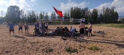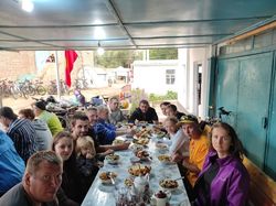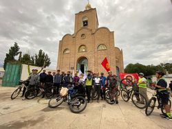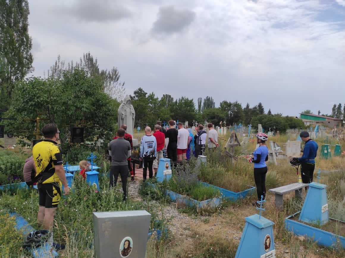Ранним утром 22 июля была совершена Божественная литургия на территории бывшего Троицкого монастыря, за которой 20 участников велопробега, воспитанников детского дома и местных жителей причастились Святых Христовых Таин. После завтрака отправились покорять последний рубеж - собор Пресвятой Троицы города Каракола, где хранится Тихвинская чудотворная икона Божией Матери. По дороге была совершена лития у поклонного Креста в помять о жертвах репрессий в годы богоборчества.