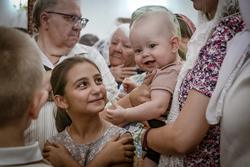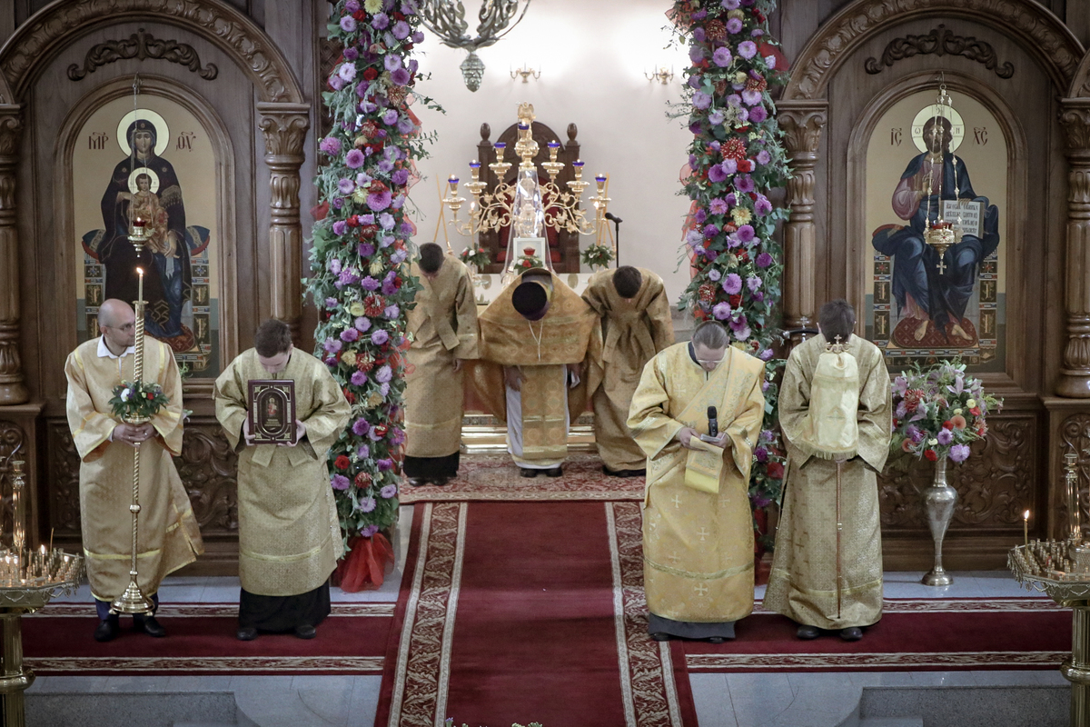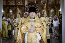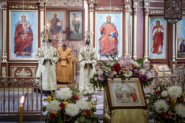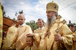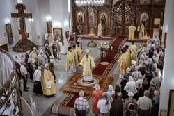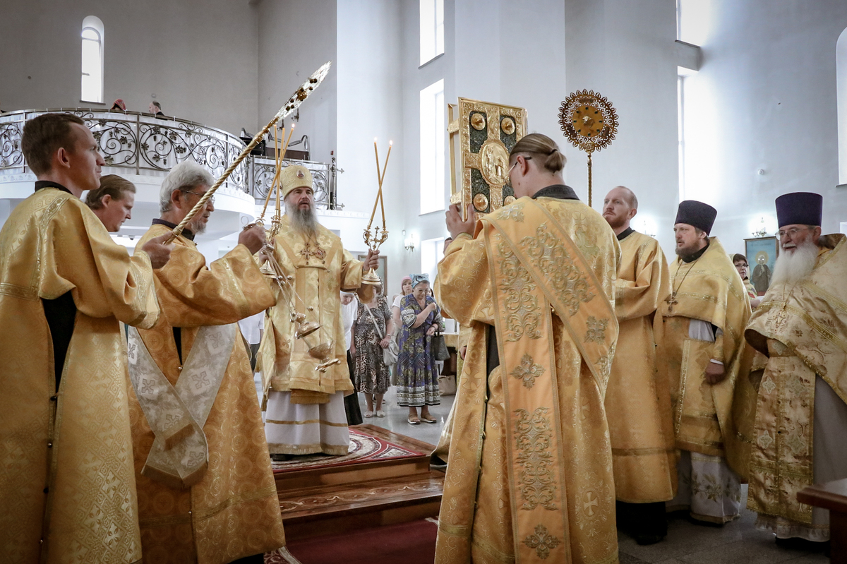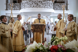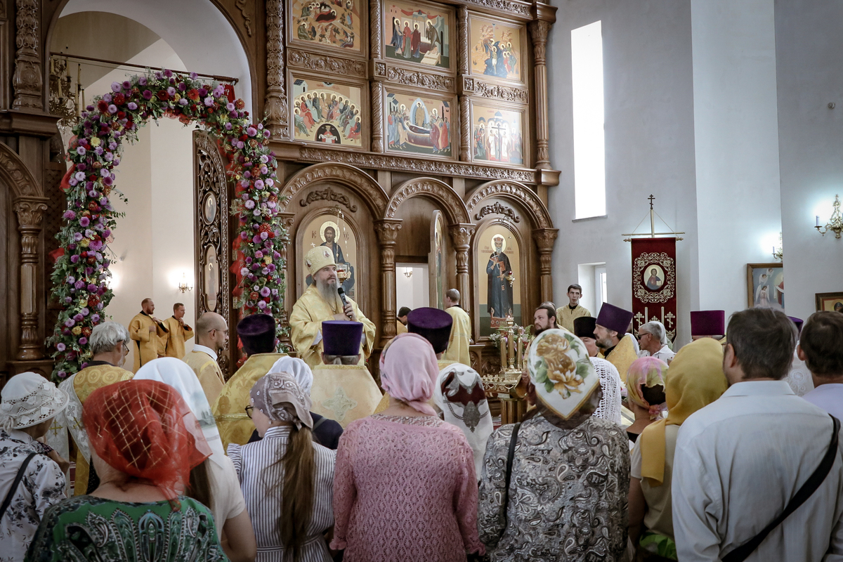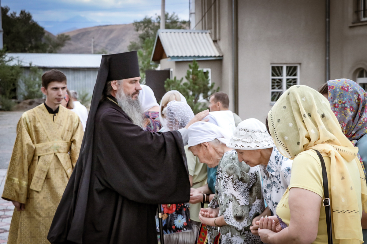 И вот раздался звон колоколов, громогласно запел верхний хор, и торжественная служба началась: три диакона попеременно возглашали ектеньи на разных языках, с особым величием и торжеством были прочитаны Евангелие и Апостол, соборно звучали «Верую» и «Отче наш». В этот день из алтаря было вынесено три Чаши со Святыми Дарами, и многие верующие причастились Тела и Крови Христовой. В конце службы епископ Савватий поблагодарил всех за соборную молитву и обратился к пастве с проповедью: "...Сегодня мы празднуем день святого равноапостольного великого князя Владимира, День Крещения Руси и День епархии Кыргызстана... Крестившись, святой князь Владимир обрел не только зрение физическое, но и духовное. Это был уже другой человек. Каковы были обычаи того времени? Люди, живущие в княжестве, пока имели пропитание, жили в своих пределах, а если оскудели закрома, то собирали войско, объезжали соседние страны, грабили или облагали налогом, собирали добычу и возвращались к себе. После Крещения у князя Владимира не только не было желания грабить других, но даже своё он не желал иметь. Он раздавал нищим княжеское имущество, он собирал столы и кормил сотни тысяч нуждающихся человек. Он отказался казнить преступников: «Как я – грешный человек – буду вершить суд над людьми?» Так преобразился князь Владимир. За князем пошла дружина, за дружиной народ…".