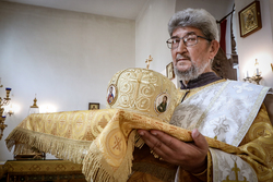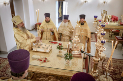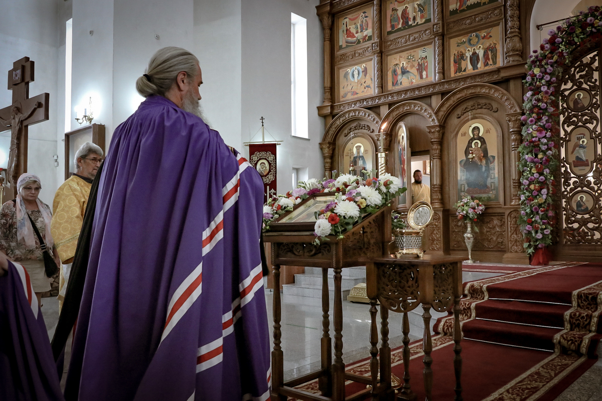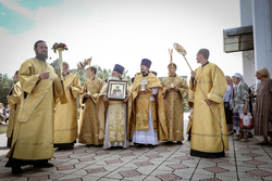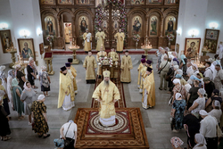 Когда подъезжаешь к собору святого равноапостольного великого князя Владимира, видна вся красота его и мощь. Особенно прохладно у подножия гор в это праздничное утро. Всё вокруг дышит праздником: и золотые купола храма, и ожидающие приезда правящего архиерея в таком же золотом облачении священнослужители и алтарники. Заметно, что многое изменилось во Владимирском соборе: обновилась прихрамовая территория, во всю идет строительство здания православной гимназии...