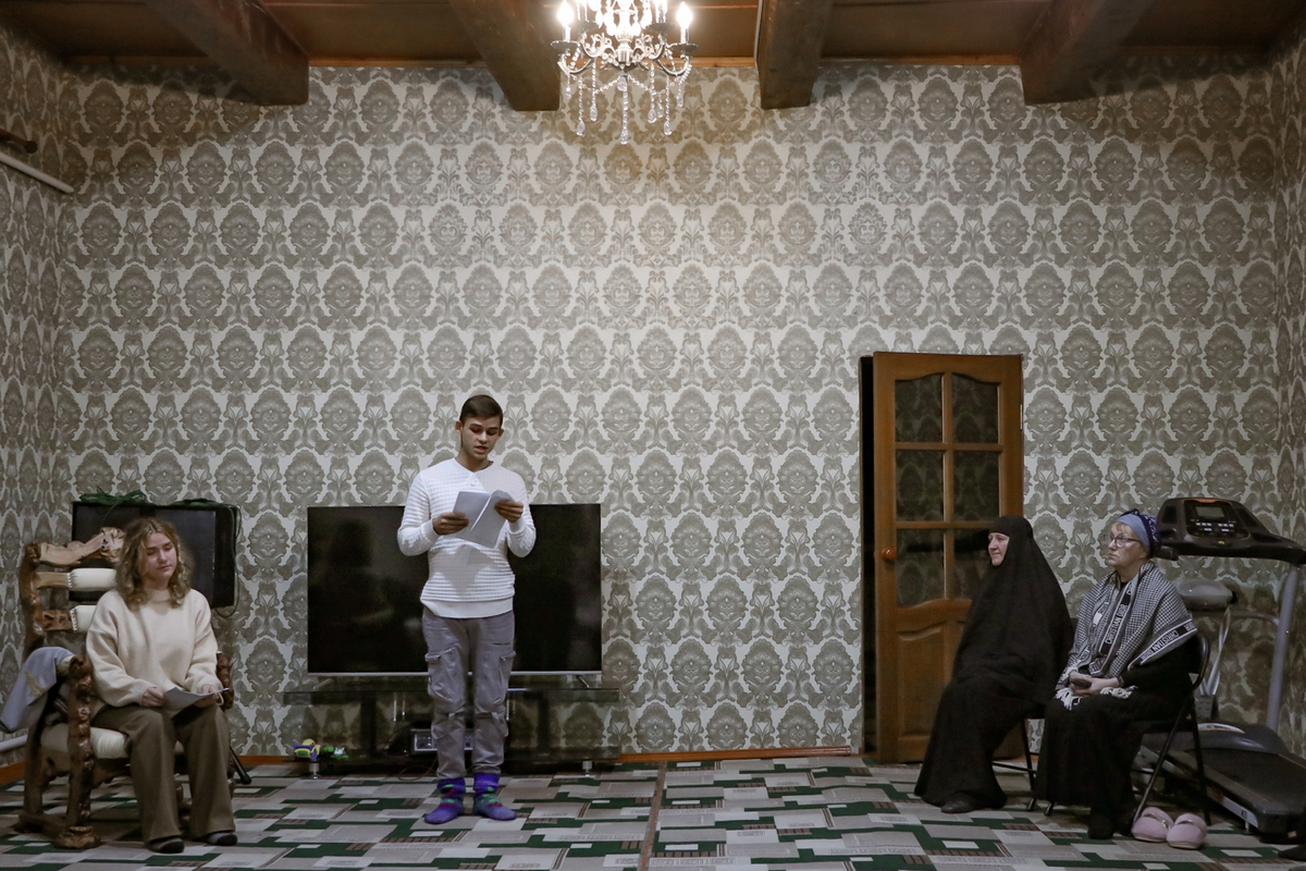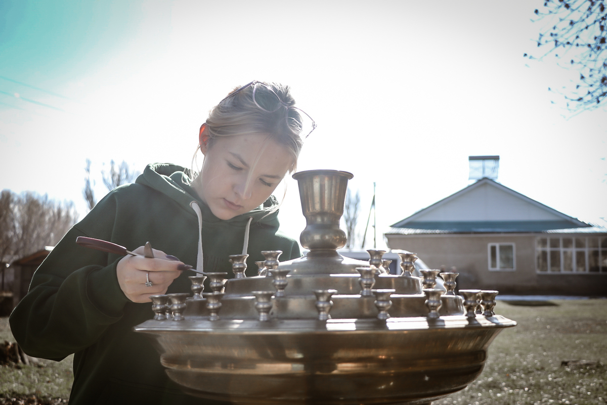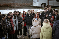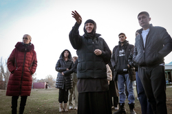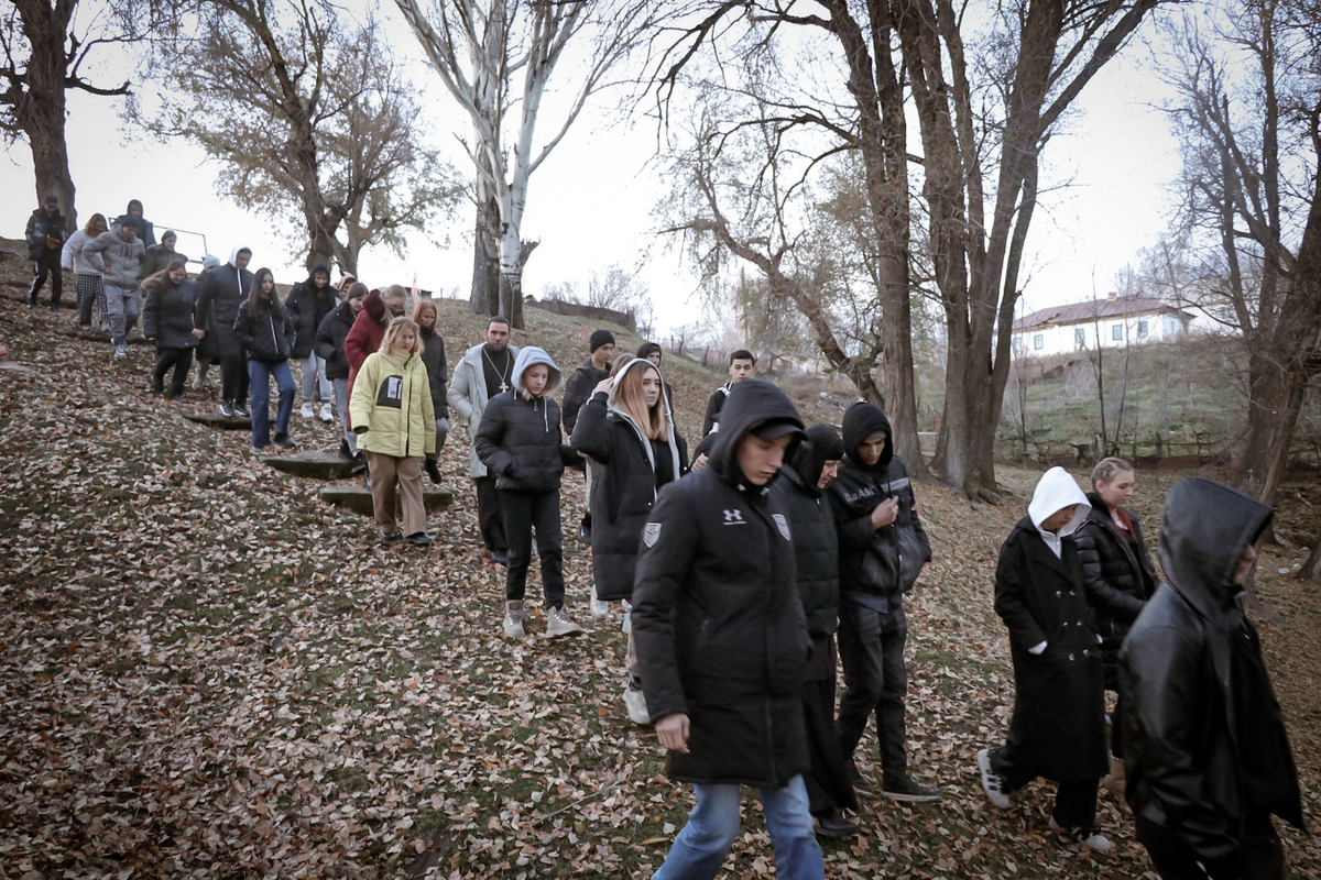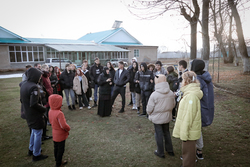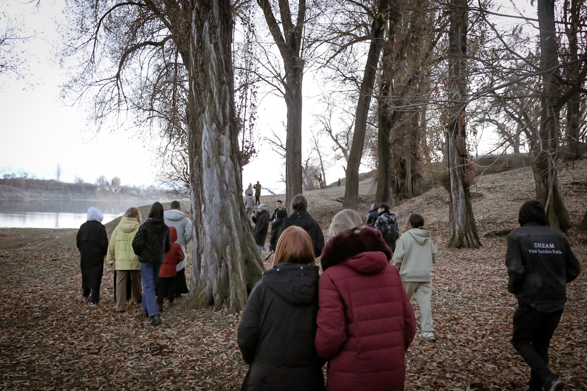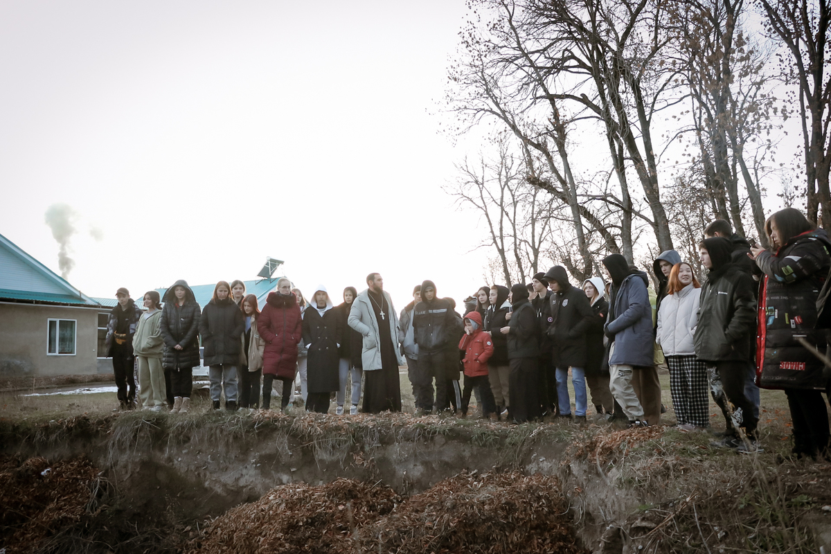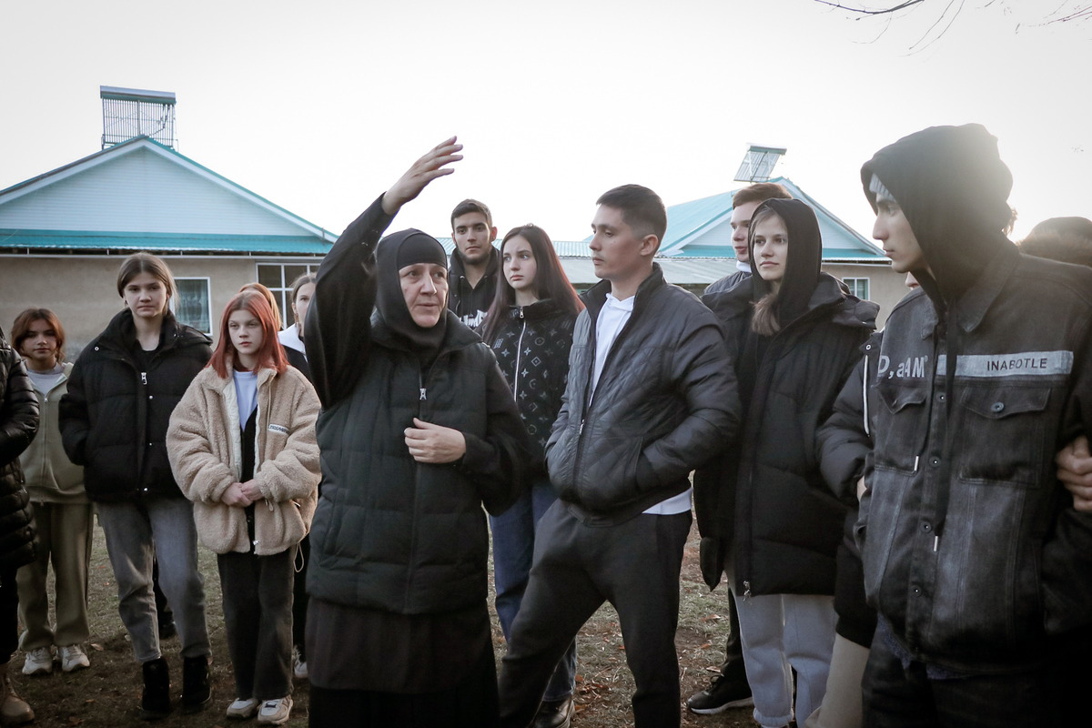 Группу молодых людей встретила монахиня Анна, которая в данное время занимается восстановлением обители и воспитанники детского дома. По прибытию за трапезой ребята кратко ознакомились и историей этого святого места, а затем была проведена экскурсия по территории. Было показано место расположения пещер, которые, предположительно являются уцелевшими остатками древнего армянского монастыря, в котором, по преданию, хранились мощи апостола Матфея. Было показано место расположения остатков фундамента Троицкого храма обители, будущая аллея матерей, на которой уже установлен памятник Токтогон Алтыбасаровой - девушке, которая в совсем юном возрасте стала матерью для 164 детей из блокадного Ленинграда. Завершилась экскурсия в единственном уцелевшем храме разрушенного монастыря, который в то время служил часовней. Этот храм был восстановлен несколько лет назад по инициативе директора детского дома Гульнары Дегенбаевой.