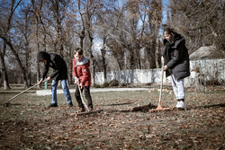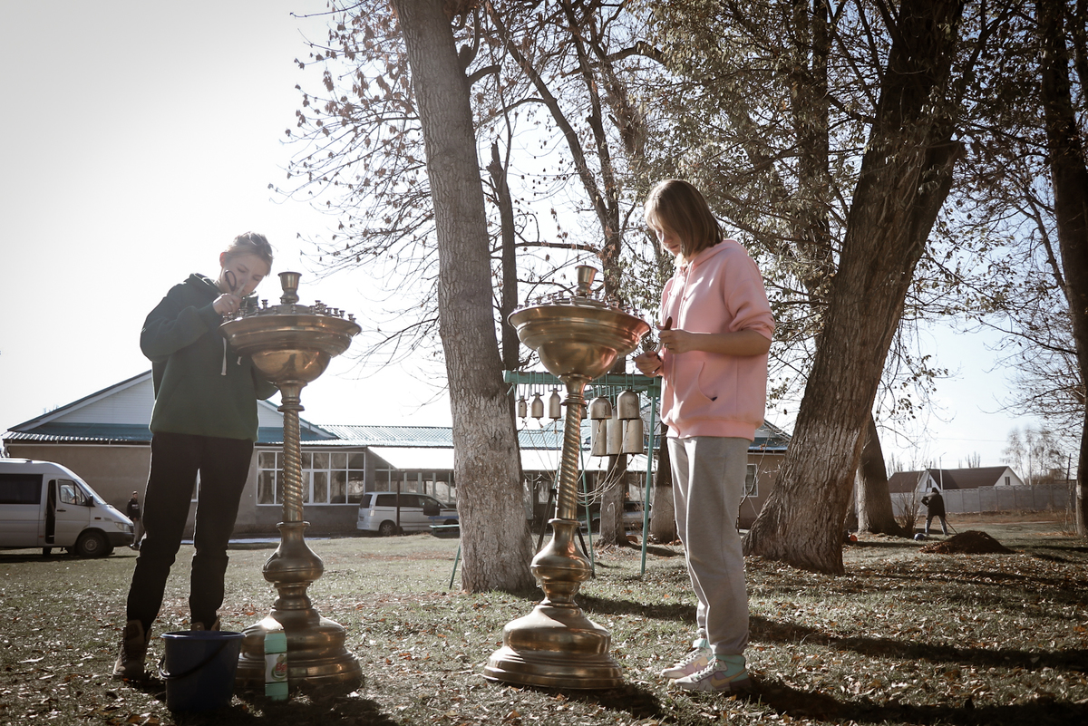 В воскресное утро все паломники отправились на Божественную Литургию, многие Причастились Святых Христовых Таин. После богослужения был организован трудовой десант в помощь восстанавливающейся обители. Ребята выкорчевывали колючки, убирали опавшую листву у деревьев, убирали в храме и чистили подсвечники, подготавливали посуду к предстоящим большим мероприятиям и приезду гостей. Одним словом - была возможность почувствовать себя настоящими монастырскими трудниками.