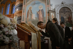 В Свято-Воскресенский кафедральный собор привезли икону Пресвятой Богородицы «Одигитрия», с частицей Покрова Пресвятой Богородицы. Икону передали Свято-Троицкому монастырю на Иссык-Куле.