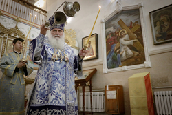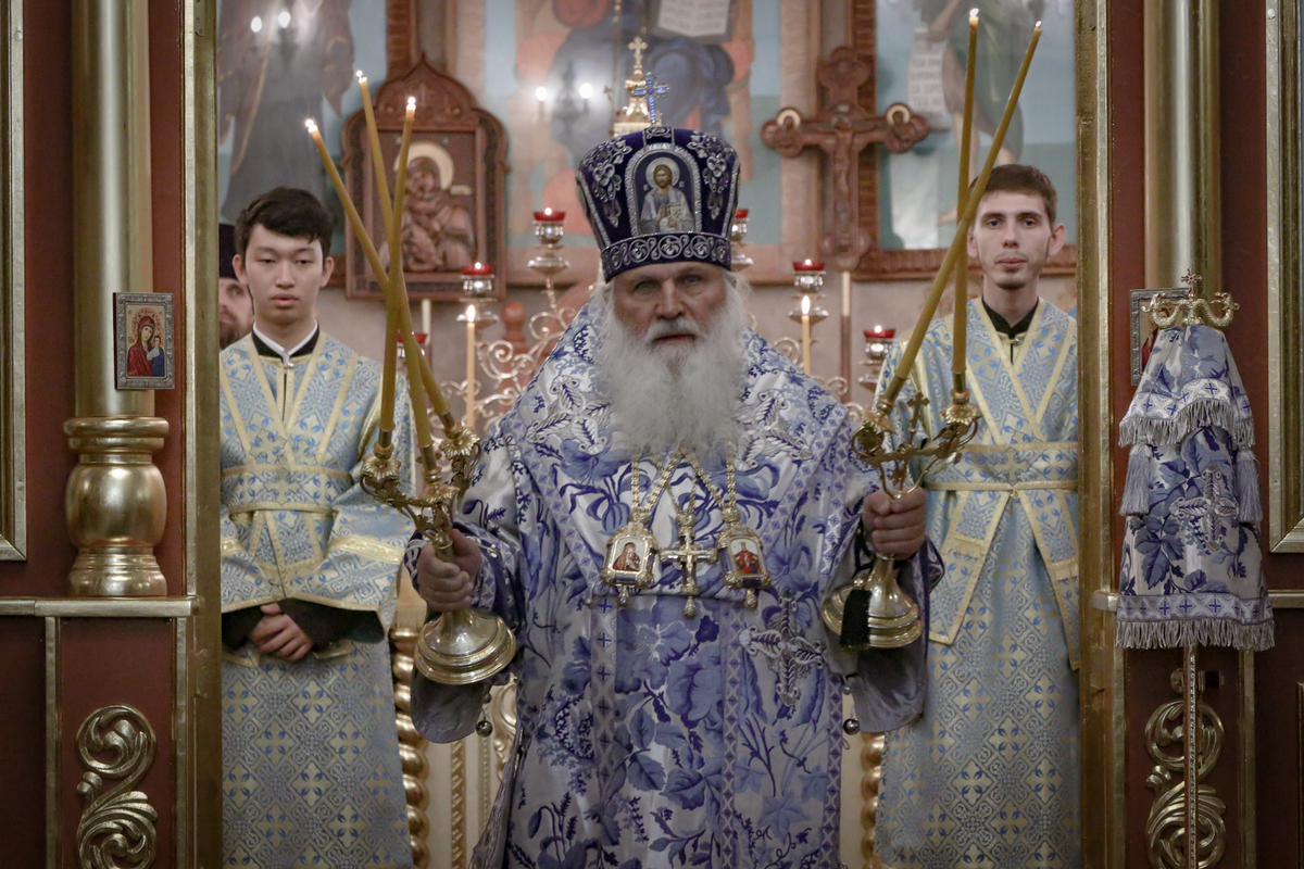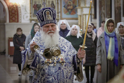 Его Высокопреосвещенство совершил Всенощное бдение в Свято-Воскресенском кафедральном соборе, в последний вечер своего пребывания в Бишкекской епархии.