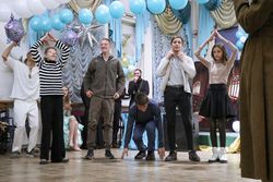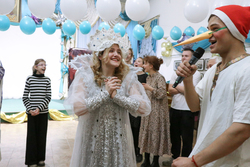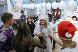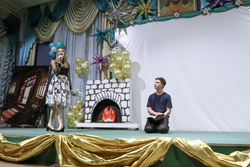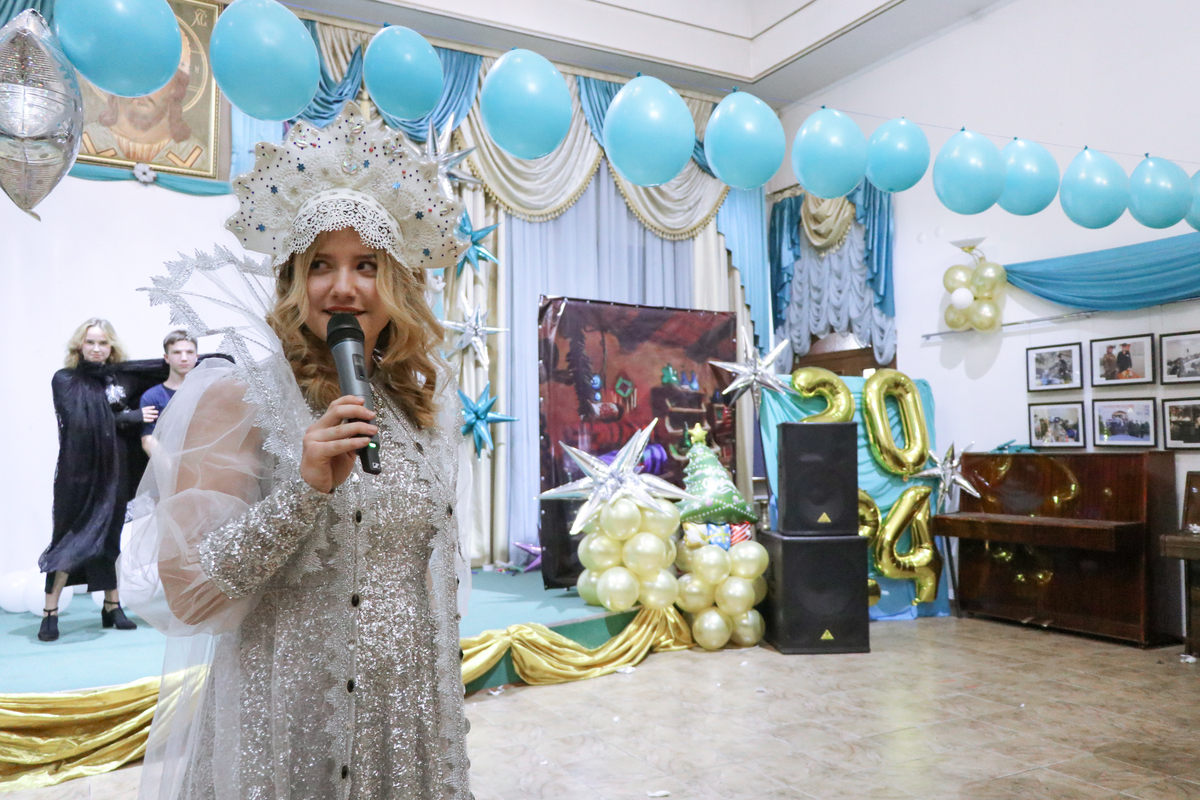 Постановку по мотивам произведения «Снежная королева» показали молодые люди, наполнив ее христианскими смыслами и ценностями. Чтобы освободить Кая из плена Снежной королевы ребятам пришлось пройти ряд испытаний - веселых заводных конкурсов и хороводов. Но вот беда - освобожденный мальчик оказался замороженным под действием злых чар королевы. На помощь было решено позвать главного волшебника праздничных дней - Деда Мороза. Все вместе дружно справились с задачей и изрядно повеселились.