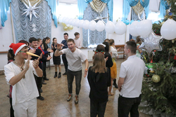 10 января в конференц-зале Свято-Воскресенского собора прошли традиционные Рождественские встречи. В начале праздника к собравшимся обратился руководитель молодежного отдела епархии иерей Илья Бойко. В ходе поздравления отец Илья предложил молодежи окунуться в атмосферу детского праздника и поучаствовать в играх и сценках, которые приготовили активисты молодежного движения.