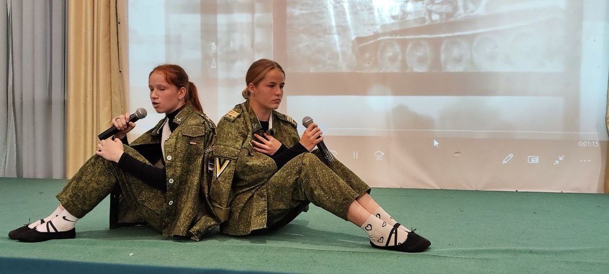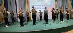 После выступления детей, пока жюри совещались и заполняли Грамоты, дети и взрослые всем залом пели военные песни.