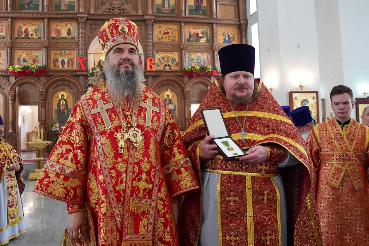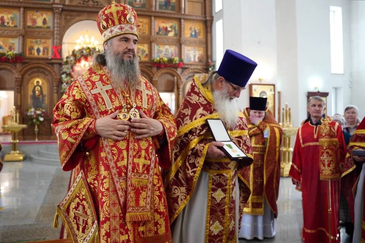 Был совершен крестный ход вокруг храма. В конце богослужения епископ Бишкекский и Кыргызстанский Савватий вручил награды от Патриарха Московского и всея Руси Кирилла. Награждены были настоятель собора протоиерей Андрей Кунавин, протоиерей Николай Сущенко и протоиерей Алексей Сыромятников. Сердечно поздравляем наших дорогих священников за заслуги в служении перед Богом, Аксиос, Аксиос, Аксиос!