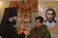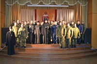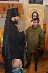 После литургии владыка Даниил встретился с руководством Российской авиационной базы и вручил командному составу памятные подарки по случаю престольного праздника – иконки покровителя Кантской авиабазы. В ходе беседы были затронуты вопросы по методам укрепления морально-психологического и духовно-нравственного состояния личного состава. Владыка выступил с предложением провести встречу с военнослужащими в его резиденции за чаем. Командир авиабазы полковник Мордовкин Игорь Анатольевич с удовольствием принял данное приглашения и дал указание заместителю командира по работе с личным составом совместно помощником командира по работе с верующими военнослужащими организовать данное мероприятие до 12 декабря этого года.