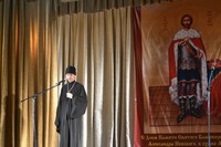 По завершении Божественной Литургии владыка произнес проповедь о святой жизни св.кн. Александра, его непоколебимой вере в Бога, любви к своему народу и Отечеству. В своей проповеди владыка задел глубины ратного служения военнослужащих своему Государству, говорил о любви к воинскому делу и о важном значении дислокации российских войск на территории Кыргызской Республики в рамках договора о коллективной безопасности нашей страны, где главным корнем этого договора является братская любовь, стабильность и безопасность наших граждан и соотечественников. Всем прихожанам и гостям были розданы подарки – образ святого князя Александра Невского и карманный православно-войсковой календарь на 2015-2016 гг., разработанный епархиальным военным отделом по Взаимодействию с Вооруженными силами.