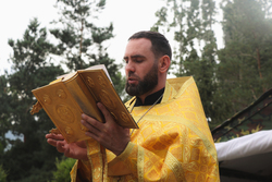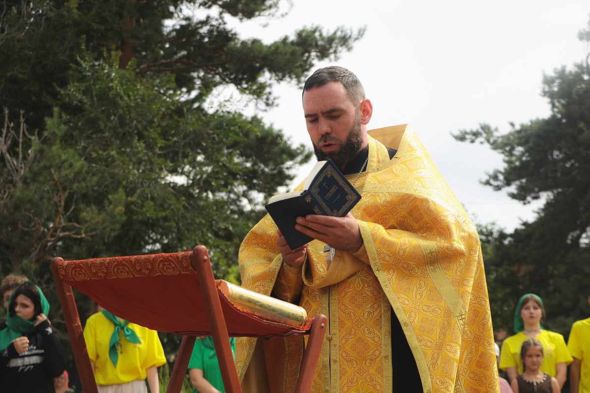 По приезду в лагерь «Дзержинец», после собрания вожатых и руководителей, иерей Илия Бойко совершил молебен на начало доброго дела.