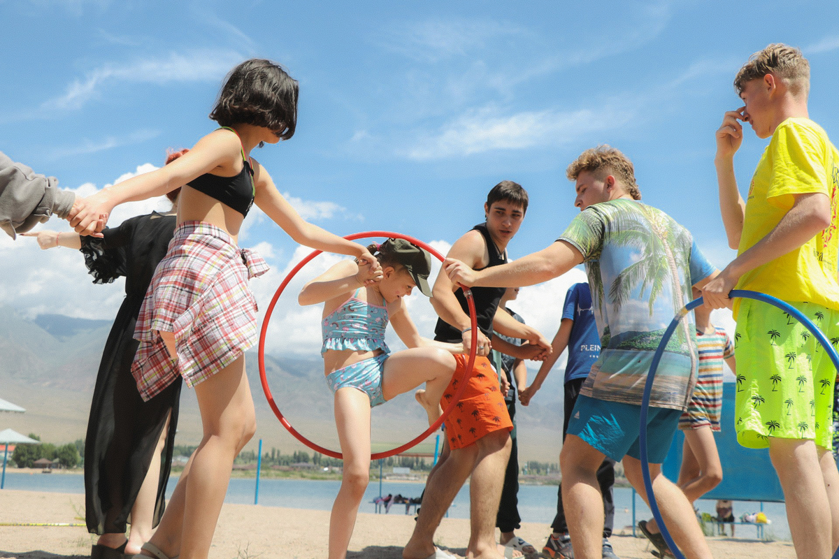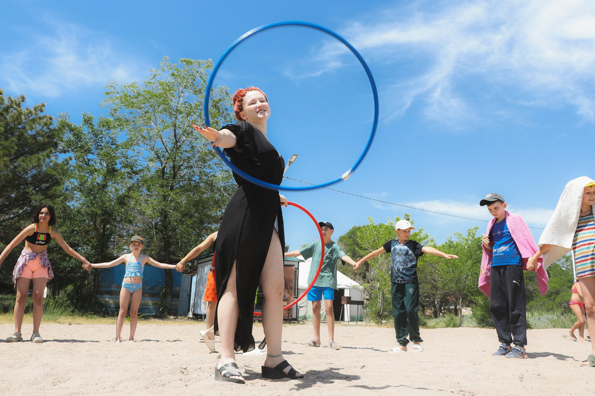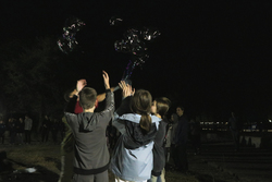 К вечеру ребята развлекались на танцевальной площадке, наблюдая попеременно за огненным шоу и надувая огромные пузыри.