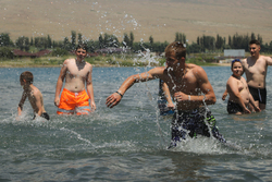 После завтрака, на пляже осваивали водное поло и другие командные состязания. А после подкрепления за обедом, отправились усердно думать и принимать творческие решения за интеллектуальными настольными играми. Выбор после полудня разнообразен, можно было поучаствовать в православных и спортивных играх, а затем потрудиться на творческих площадках по отработке номеров к закрытию фестиваля.