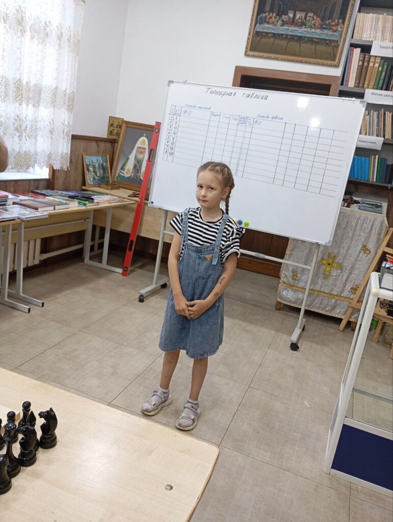Победила в упорной, интересной борьбе команда мальчиков в составе: Деркач Микаэля, Солнцева Властислава, Топильского Кирилла, Бабак Ивана, Колотвина Максима, Деркач Владимира, Шпиндлер Артура и Глусцова Ивана. Им вручён главный приз – кубок храма по шахматам.