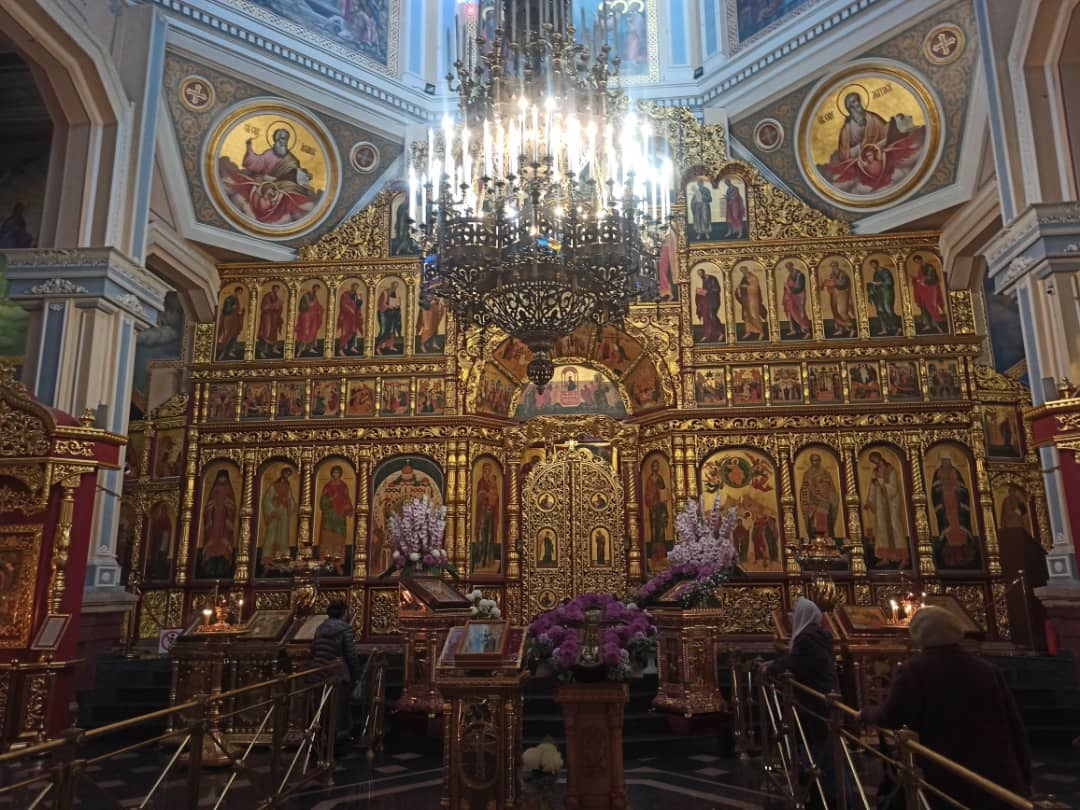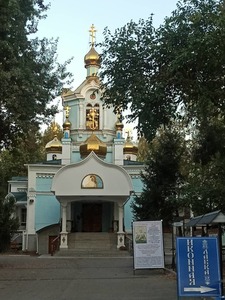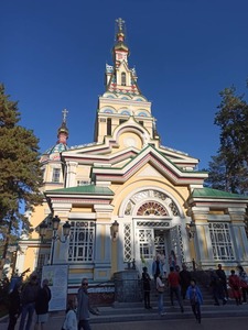 В городе Алма-Ате посетили Свято-Вознесенский кафедральный собор, возвышающийся в центре парка 28 Панфиловцев и украшающим своим великолепием центральную площадь парка.