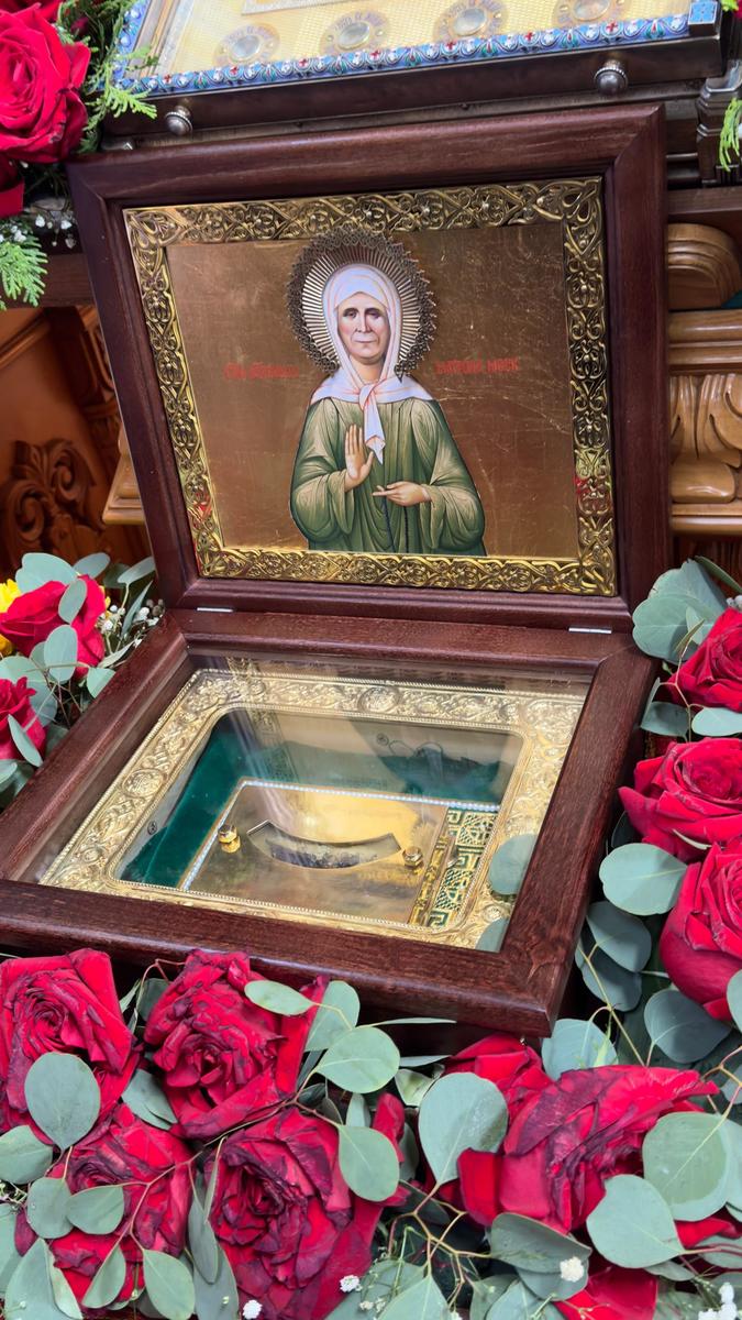 Под пение тропаря праведнице, ковчег со святыми мощами был внесен под своды собора и установлен в центре храма.