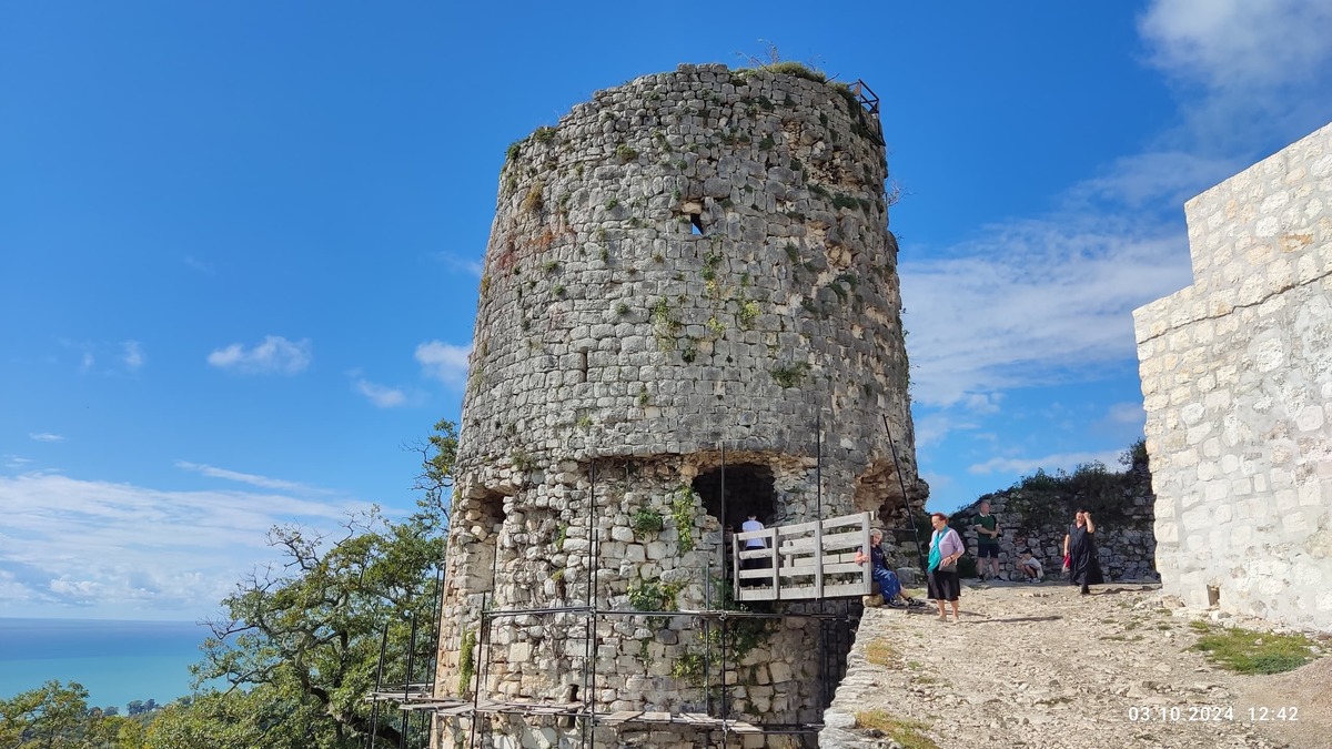 Очень запомнилась поездка в Дранды, где расположен один из первых храмов Колхиды, храм Успения Божией Матери. Храм был построен в то же время, как и храм святой Софии в Турции.