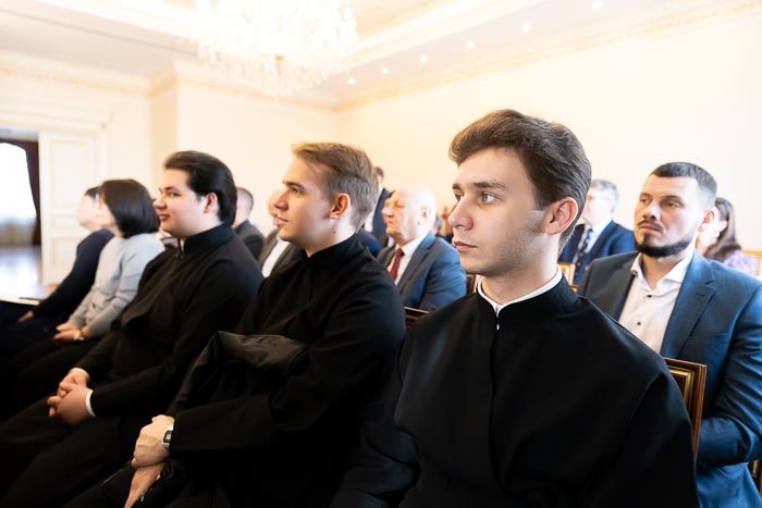 Открывая пленарное заседание, протоиерей Евгений Иванов поздравил присутствующих с началом работы конференции, отметив историческую и духовную значимость мероприятия. Ректор духовной школы зачитал приветственный адрес митрополита Астанайского и Казахстанского Александра участникам научного форума.