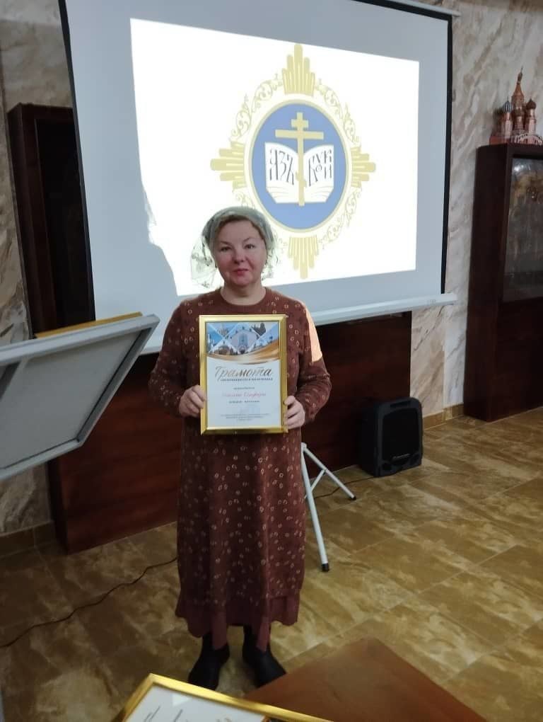 Евгении Катаровой была вручена архиерейская грамота за сотрудничество в организации и развитии паломнических поездок.