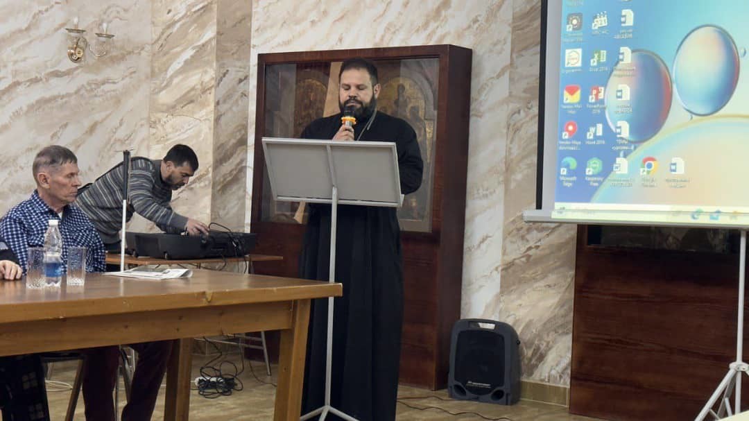 Михаил Самсонов, сотрудник паломнического отдела, выступил с докладом о героизме Николая Ананьева, уроженца села Сазановка (ныне Ананьево), и о подвижнической жизни преподобноисповедника Ираклия Иссык-Кульского.