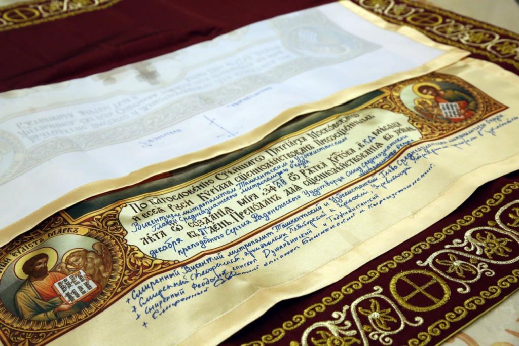 В журнале об освящении храма преподобного Сергия Радонежского на территории Синодального административного центра Синода Среднеазиатского митрополичьего округа архипастыри «сыновне возблагодарили Святейшего Патриарха Московского и всея Руси Кирилла за преподанное благословение на строительство Синодального центра и отеческую заботу о епархиях Среднеазиатского митрополичьего округа».