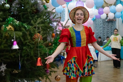 Праздничную атмосферу создали ведущий Александр Сайгин, а также аниматоры – ученики и выпускники Владимирской школы. Они радовали детей веселыми хороводами, песнями, загадками и подвижными играми. Роль Снегурочки в этом году исполнила ученица Владимирской школы Аня Валь, а бессменный Дед Мороз – бессменный Владимир Белкин – зажег зал своей искрометной энергией и остроумием. Завершением праздника для каждого ребенка стал заветный подарок от Доброго волшебника.